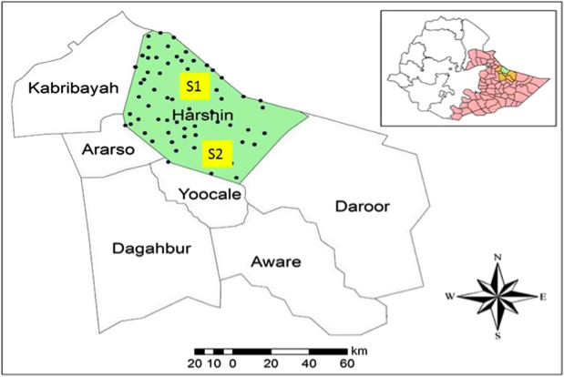 Harshin and its neighboring districts in Faafen zone, Eastern Somali region, Ethiopia, 2019. © Derege Tsegaye Meshesha et al., Ecology and Evolution